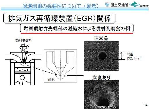 EGRによるNOx削減が不能となる。その場合には、現時点ではディーゼル重量車におけるNOx削減の重要な柱の一 つが無くなるため、今後のディーゼル重量車におけるNOx規制の強化が困難になると推測される。したがって、重量車 におけるクールドEGRの温度に関する保護制御の範囲が「大気温度が0℃以下」との規定は、現在のクールドEGRの 技術開発の進展状況からみると、極めて技術的に合理性のある保護制御の範囲であると考えられる。