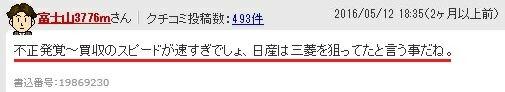 含めて誠実に対応してもらいたい」との発表・発言した上、その7日後の2016年4月29日に発行の日本経済新聞に関係 者(=国土交通省の官僚?)の話として、「国土交通省が三菱自動車のカタログ燃費不正の車両の「型式認定」を取り 消す方向で検討を開始した」との出鱈目な記事に対する抗議もせずに沈黙を守ったようである。